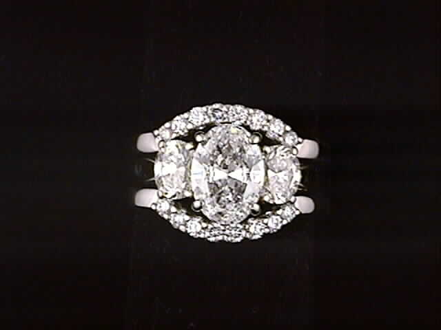 14 karat white gold custom made shadow wedding bands to fit customer's three stone engagement ring (ja)